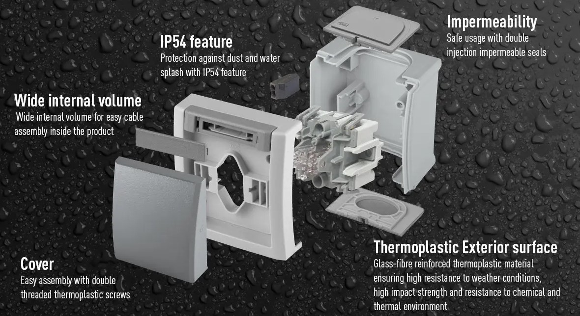 Наружные розетки и выключатели Panasonic Pacific со степенью защиты IP54